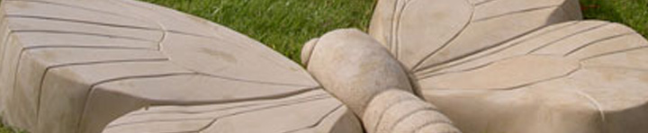 Cast stone butterfly lifecycle sculptures which include butterfly eggs on an oak leaf, caterpillar, chrysalis and butterfly sculptures shown here at Newham Bridge Primary School, Middlesbrough with a backdrop of a forest floor sculpted out of galvanised steel. Durable and permanent these sculptures make attractive, educational features for any school ground or wildlife area.