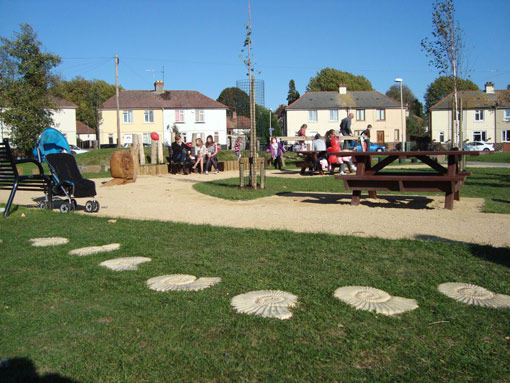 This stepping stone takes the shape of an ammonite fossil and can be repeated to form an interesting path or as a individual feature.